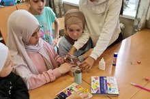 Каждый день в лагере насыщен самыми разными делами. Каждый день в лагере запланирован так, что детям некогда скучать. 10 июня наш лагерь посетил Сармановский музей ВОВ и краеведения. Встреча была посвящена «1100 – летие принятия Ислама Волжской Болгарией». Сегодня каждый ребенок смог прикоснуться к бережно хранимой культуре, истории и природе Древнего Болгара. Дети прияли активное участие в изготовлении браслетов, примерили костюм древних рыцарей, а также изготавливали из глины глиняные горшки.\ Лагерьда һәр көн төрле эшләргә бай. Лагерьда көн саен балаларга күңелсезләнергә вакыт юк. 10 июнь көнне безнең лагерьга Сарман Бөек Ватан сугышы һәм туган якны өйрәнүга музей килде. Очрашу «Идел буе Болгарстанында Ислам динен кабул итүгә 1100 ел»багышланган иде. Бүген һәр бала борынгы Болгарның сакланган мәдәниятенә, тарихына һәм табигатенә кагыла алды. Балалар беләзекләр ясауда актив катнаштылар, борынгы батырларның костюмын киеп карадылар, шулай ук балчык чүлмәкләрен ясадылар.