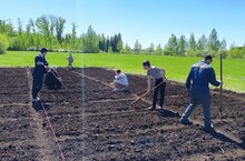 16 мая учащиеся нашей школы совместно с учителями посадили школьный огород.