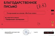 Поздравляем! 14.11.2025 Наш школьный театральный коллектив «Веселая сцена» участвовала в проекте «Подростковый социальный театр», в которой в рамках проекта проходит акция «Театральная мастерская» и награждена благодарственным письмом! Поздравляем! Цель акции заключается в помощи подросткам осознать и выразить свои эмоции через театральное искусство. Одна из важных задач акции - это популяризация социального театра, а также развитие навыков рефлексии и эмпатии у участников. Выражаем огромную благодарность нашему школьному театральному коллективу "Веселая сцена"!