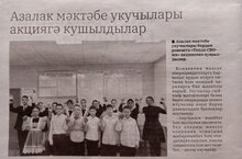 Наши ученики в страницах газеты "Сарман" 21.01.2025 Безнең укучыларыбыз "Сарман" газетасы битләрендә! "Сарман" газетасы 1931 нче елдан бирле чыгып килә торган районыбыз газетасы. Республика, район, авылларның иң актуаль яңалыклары, шулай ук җәмгыять, сәясәт, мәгариф, мәдәният, спорт һәм башка бик күп яңалыкларны чагылдырып баручы газета ул! Безнең укытучылар коллективы 100% районыбыз газетасына язылучылар булып торалар. Мәктәбебез һәрдаим район газетасы белән тыгыз элемтәдә эшли. Шушы көннәрдә мәктәбебез, укучыларыбыз эшчәнлеге "Сарман" газетасы битләрендә чагылыш тапты. "Азалак мәктәбе укучылары бердәм рәвештә "Тепло СВОим" акциясенә кушылдылар. Коллектив махсус операцияләрдәгеләргә һәрдаим ярдәм итәргә омтыла һәм мондый чараларга бик җаваплы карый. Укучылар сыйныф җитәкчеләре белән бергә операциядә хезмәт итүчеләр өчен йөрәк рәвешендәге брелоклар ясаганнар. -Һәр брелок - мәхәббәт һәм җылылык кисәкчеге. Без аларны махсус операция зонасына җибәрәчәкбез һәм солдатларга кыюлык, ныклы сәламәтлек, һәм көч телибез, - диелә әлеге язмада. Дөрестән дә укучыларыбыз да, укытучыларыбыз да бу эшкә бик җаваплы карый, махсус хәрби операциядә катнашучыларга иң изге теләкләре белән үзләреннән өлеш кертергә омтылып торалар. Шушы изге эшебезне күреп алып, газета битләрендә яктырткан "Сарман" газетасын чыгаручыларга, баш мөхәррире Сабирова А.А.га олы рәхмәтебезне җиткерәбез, аларга эшләрендә зур уңышлар теләп калабыз! Ә "Сарман" газетасы райондашларыбыз, авылдашларыбыз һәм безнең өчен иң яраткан, яхшы, эчтәлекле газеталарның берсе булып калуын телибез!