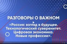 РАЗГОВОРЫ О ВАЖНОМ. ТЕМА: "РОССИЯ ВЗГЛЯД В БУДУЩЕЕ" 13.11.2023 РАЗГОВОРЫ О ВАЖНОМ. ТЕМА: "РОССИЯ ВЗГЛЯД В БУДУЩЕЕ" Цель занятия в 1-4 классах: знакомство обучающихся с понятием технологический суверенитет, расширение представлений младших школьников о важных открытиях, сделанных российскими специалистами, развитие познавательного интереса к науке и технологиям, к профессиям завтрашнего дня, воспитание чувства гордости за технологическое развитие России. Цель занятия в 5-11 классах: формирование у обучающихся ценностного отношения к необходимости создания технологического суверенитета в России. Формирование ценностного отношения к знаниям в сфере инновационных технологий, к их постоянному углублению и расширению. Получение представлений об особенностях профессий будущего и связанных с ними компетенциях человека.