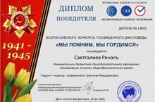 Поздравляем! 02.12.2025 Воспитанница дошкольной группы МБОУ «Азалаковская ООШ» Шафигуллина Лилия стала победителем Всероссийского конкурса, посвященного Дню Победы «Мы помним, мы гордимся» и удостоен диплома победителя! Поздравляем, Лилия!