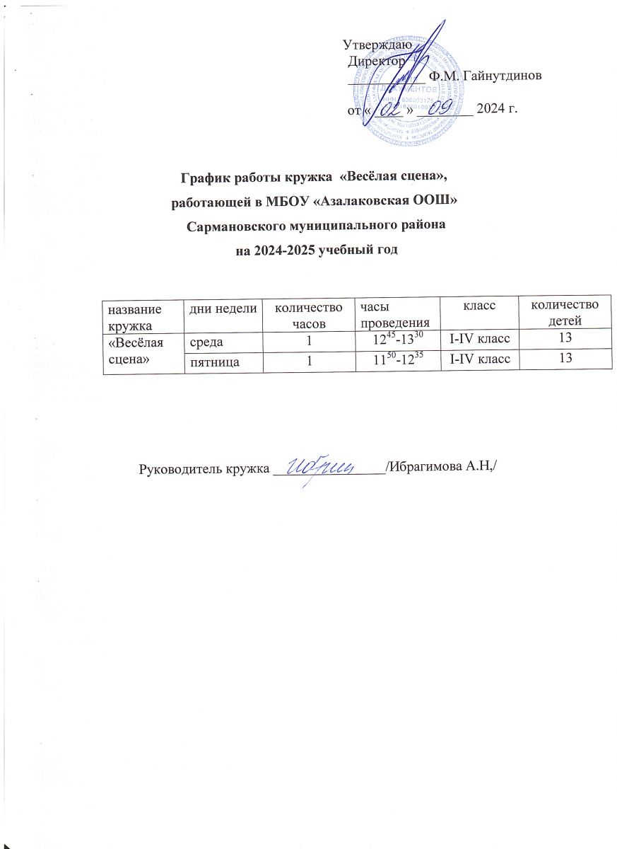 График работы кружка "Веселая сцена" МБОУ "Азалаковская ООШ" на 2024-2025 учебный год