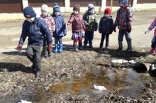 В кружке ”Таинственная бумага" делали бумажные лодки. В этот прекрасный весенний день мы запустили эти лодки.