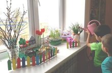 Һәркөнне үзебезнең тәрәзә төбендәге бакчаны күзәтергә яратабыз, су сибәбез, тәҗрибә нәтиҗәләрен чыгарабыз. /Каждый день любим наблюдать свой огород на подоконнике. Сами поливаем растения, делаем выводы опытов.