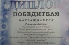 В декабре 2017 года ГАУ «Республиканский олимпиадный центр» провёл литературный конкурс «Зимнее чудо». Ученица 5-ого класса Гарипова Лейсан стала победителем этого конкурса.