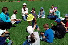 Җәйге лагерьдә ял итүче балалар татар халык уеннары уйныйлар.