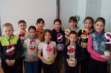 Әниләрне котлап барлык класс укучылары да үз куллары белән бүләкләр ясадылар.