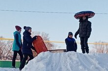4 января ученики начальных классов собрались у школы. На свежем воздухе вместе играли в разные игры. -