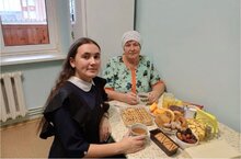 Я и моя бабушка, мы с бабаушкой устроили чаепитие со вкусными конфетами и пирогами. Делайте добрые дела, проводите больше врменени со своими родными.