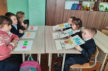 Учащиеся 1 класса Большенуркеевской средней общеобразовательной школы занимаются в кружке ”Игровая студия"...