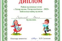 "Татар малае,татар кызы" район бәйгесе узды.Безнең бакчадан Гарипов Раил уңышлы чыгыш ясады һәм Дипломга ия булды. Әфәрин! \Прошел муниципальный конкурс "Татар малае, татар кызы". Из нашего сада Гарипов Раиль успешно выступил и был награжден Дипломом. Поздравляем! 14.03.2022