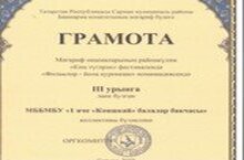 Мәгариф оешмаларының районкүләм "Киң түгәрәк" фестивалендә "Фольклор-йола күренеше" номинациясендә безнең җалалар бакчасы коллективы 3 нче урынга лаек булды. 29.03.2022
