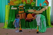 Театр кукол "Алина" из города Набережные Челны погрузили наших мальчишек и девчонок, а так же и воспитателей в волшебный мир музыкальной сказки «Забавные приключения песика Барбосика и его друзей в Васильково». Это было очень интересно и волнительно. Актеры показали нам ошеломляющий сказочный мир. Превосходные декорации, первоклассные актеры. Дети получили массу положительных эмоций. Вместе с героями сказки ребята радовались, сопереживали им./Яр Чаллы шәһәренең "Алинә" курчак театры балаларны һәм тәрбиячеләребезне «Песик барбосик һәм аның дусларының Васильководагы кызыклы маҗаралары» музыкаль әкиятенең тылсымлы дөньясына кертте. Бу бик кызыклы һәм дулкынландыргыч иде. Актерлар безгә искиткеч әкият дөньясын күрсәттеләр. Бик шәп декорацияләр, беренче класслы актерлар. Балалар бик күп уңай хисләр алдылар. Әкият геройлары белән бергә балалар шатландылар, аларны кайгырттылар.