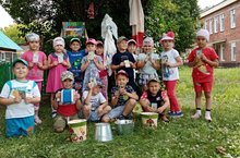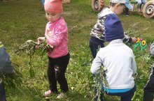 Икенче кечкенәләр төркеме балалары уен мәйданчыгын корыган агач ботакларыннан чистарттылар./Дети второй младшей группы очистили участок от сухих веток. 26.06.2020