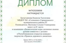 Воспитанница подготовительной группы Багаутдинова Камилла стала обладателем Диплома в номинации «Дидактические игры сделанные своими руками совместно с детьми» республиканского открытого конкурса творчества «Правила дорожного движения». Поздравляем! Руководиитель: Вагизова Г.Г./ Мәктәпкә әзерлек төркемендә тәрбияләнүче Баһаветдинова Камилла «Юл хәрәкәте кагыйдәләре» республика ачык иҗат конкурсының « Үз куллары белән ясалган дидактик уеннар» номинациясендә дипломга ия булды. Котлыйбыз! Җитәкчесе: Вәгыйзова Г. Г. 11.03.2020
