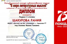Республиканский конкурс художественного чтения "В мире литературных мыслей", посвященный 75-летию Победы Великой Отечественной войне. 13.05.2020