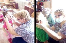 Бүген бездә теш табиблары балаларның тешләрен карадылар./Сегодня зубные врачи смотрели зубы у детей. 14.03.2019