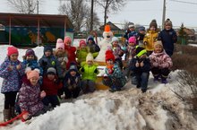Зурлар төркеме балалары үзенчәлекле кар бабай ясадылар./Дети старшей группы слепили необычайного снеговика. 18.03.2019