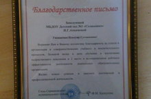 Благодарственное письмо за 2 место в муниципальном рейтинге эффективности деятельности дошкольных образовательных организации. 28.08.2018