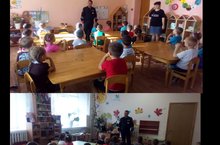 В нашем детском саду состоялась встреча с инспектором отдела ГИБДД Хуснутдиновым А.А.. Инспектор по пропаганде безопасности дорожного движения рассказал детям о том, как правильно вести себя на проезжей части и объяснил правила езды на велосипеде.\Безнең балалар бакчасында ЮХИДИ бүлеге инспекторы Хөснетдинов А. А. белән очрашу булды.. Юл хәрәкәте иминлеген пропагандалау буенча инспектор балаларга юл йөрү өлешендә үзеңне ничек дөрес тотарга кирәклеге турында сөйләде һәм велосипедта йөрү кагыйдәләрен аңлатты. 25.09.2018