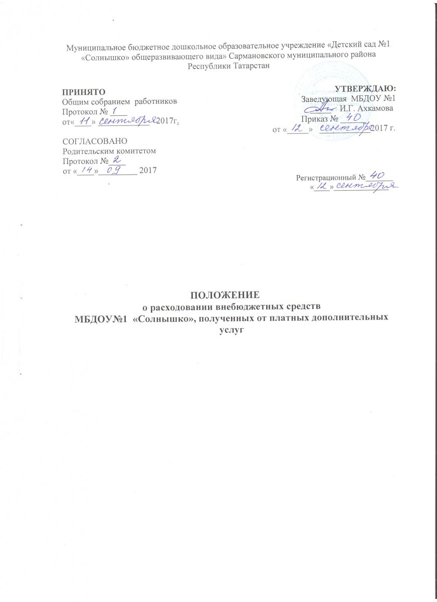 Положение о расходовании внебюджетных средств МБДОУ №1 “Солнышко”