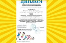 Инструктор по физической культуре Бекмурзина Гульназ Мусавировна заняла 3 место в номинации «Комплекс утренней гимнастики сюжетного характера без предметов» в республиканском конкурсе разработок комплексов утренней гимнастики танцевально-ритмического характера с детьми подготовительных к школе групп «На зарядку становись!» . Поздравляем!