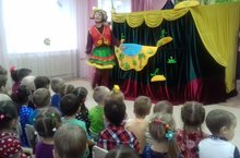 В детском саду театр кукол «Алина » из города Альметьевск показал музыкальную сказку «Путешествие льва Бонифация в Африку». Сказка очень понравилась маленьким зрителям.