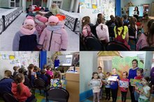 Бүген уртанчылар, зурлар һәм мәктәпкә әзерлек төркеме балалары район балалар китапханәсенә экскурсиягә бардылар. Китапханә хезмәткәре Раиля Хамзовна балаларны уку залы һәм балалар абонементы эшчәнлеге белән таныштырды. Шулай ук рус һәм татар телендә мультфильмнар карау балаларның күңелен тагын да күтәрде. Балалар киләчәктә китапханәгә әти-әниләр белән килергә теләк белдерделәр.