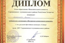 Казан шәһәрендә "Сайяр" театраль фестиваль -бәйгенең җиңүчеләрен бүләкләү тантанасы узды. Бәйгедә Татарсан Республикасының 42 муниципаль районыннан 200 дән артык белем бирү учреждениесенең балалар театр коллективлары катнашты. Безнең балалар бакчасы бәйгенең "Тамашачы мәхәббәте" номинациясендә җиңүче булды.
