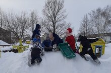 Дети подготовительной группы веселятся на снежной горке/ Мәктәпкә әзерлек төркм балалары рәхәтләнеп тауда уйныйлар