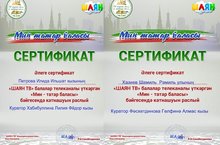 Воспитанники средней группы Гайнемова Фируза и Юнусов Рамзан, под руководством воспитателя Хаертдиновой Гульназ Ильгизаровны, стали дипломантами 2 и 3 степеней на Всероссийском фестивале творчества "Осенних ярких красок бал..." в номинации"Люблю я осени картины..."/Уртанчылар төркемендә тәрбияләнүчеләр Гайнемова Фирүзә һәм Юнысов Рамзан, тәрбияче Хәертдинова Гөлназ Илгизәр кызы җитәкчелегендә, "Көзге якты бизәкләр" Бөтенроссия иҗат фестивалендә 2 һәм 3 дәрәҗә дипломант булдылар.
