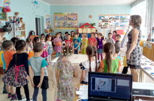 Бүген беренче кечкенәләр төркемендә Зиатдинова Ильгиза Ильгизовна ачык шөгель күрсәтте. Балалар бик кызыксынып катнаштылар./ Сегодня в первой младшей группе Зиатдинова Ильгиза Ильгизовна провела открытое занятие с детьми.
