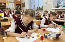 1 нче Б сыйныф укучылары, «Россия бөркете» программасында катнашучылар Кыш бабайның иҗат остаханәсендә зур энтузиазм белән эшләрен дәвам итәләр.
