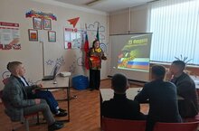 Продолжилось мероприятие в актовом зале, где команда учащихся профильного педагогического класса выступили с юмористической программой «Я б в учителя пошел, пусть меня научат». И завершилось мероприятие историко-музыкальной композицией «О Родине, о доблести, о славе».