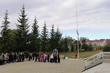3 сентября во дворе гимназии прошла церемония спуска Государственного флага Российской Федерации. До спуска флага заместитель директора по воспитательной работе Нуриахметова Изета Николаевна рассказала учащимся о том, что 2 сентября - День окончания Второй мировой войны, а 3 сентября - День солидарности в борьбе с терроризмом.