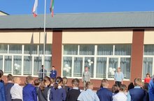 В рамках патриотического воспитания в нашей школе каждая учебная неделя начинается с поднятия флагов Российской Федерации и Республики Татарстан, а также исполнения гимнов. На линейке присутствуют директор школы Латифуллина Г.Ф. и советник директора по воспитательной работе Габдрахманова Э.Ш.