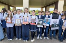 Учащиеся и педагоги школы держали в руках портреты своих близких - ветеранов и участников Великой Отечественной войны, славных защитников Отечества недавних сражений.