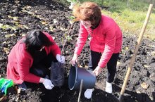 К акции «50 яблонь к 50-летию школы» присоединились родители 1а класса. Сегодня от имени родителей этого класса юбилейное плодовое дерево посадила председатель родительского комитета Регина Ринатовна Мустафина. И первый учитель Фарида Раисовна Бадриева не осталась в стороне.