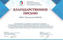 Школа и заместитель директора по ВР Шайдуллина Л.К. награждены Благодарственным письмом Общероссийской общественно-государственной детско-юношеской организации “Российское движение школьников” за плодотворное сотрудничество в проведение III ежегодного мониторинга и за активное участие в жизни организации.