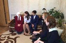 7 май көнне мәктәбебез юнармеецлары һәм парламент вәкилләре хезмәт ветераны янында булдылар һәм аны якынлашып килүче бәйрәм белән котладылар. -