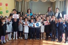 С целью предупреждения детского дорожно-транспортного травматизма в школе прошел праздник - "Посвящение первоклассников в пешеходы".