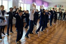 Сегодня стартовал проект "Спортивная среда". Всё классы дружно делали утреннюю зарядку.