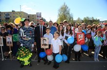 Бүген мәктәбебезнең зур коллективы Бөек Җиңүнең 76 еллыгына багышланган парадта катнашты. Безнең белән бергә сугыш кырларында һәлак булган, сугыш яраларыннан үлгән туганнарыбыз да үтте мәйданнан.