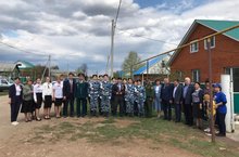 Сегодня Юнармейцы школы вместе с администрацией района и поселка поздравили с праздником ветерана войны Габдулахата Исмагилова, который проживает в деревне Кузяково.