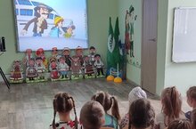 Накануне Дня Республики Татарстан, дети закрепили знания о символах Татарстана: гимне, гербе и флаге. Прочли стихи о национальных костюмах народов Поволжья: и дети, и воспитатели. Чтецы были очень выразительны, ведь им помогал национальный костюм, о котором вёлся рассказ.