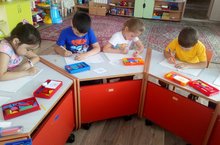 Рисунок для дошкольника – это пока еще совсем не творчество, а своеобразная речь, которой он сообщает нам о том, как себя чувствует и как воспринимает мир вокруг себя. Когда малыш творит, он настолько погружается в рисование, что иногда может даже не слышать взрослых. Это тот самый момент, когда он передает нам через рисунок все то, что таится у него внутри.Вот мы взяли краски в руки,