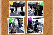 Сегодня дети подготовительной группы вместе со своим воспитателем Шаймардановой В.Н. трудились по уборке участка детского сада, веранды, дорожек от снега.