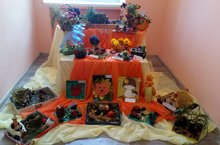 В нашем детском саду прошла выставка поделок из природного материала «Что нам осень подарила». Творческие работы созданные руками детей и родителей.Цель: приобщить детей к миру прекрасного, учить их восторгаться причудливой красотой цветов, плодов различных растений, осенних листьев, шишек, каштанов. Совершенствовать устойчивый интерес к работе с природным материалом. Воспитывать любовь к природе, бережное отношение к ней. -