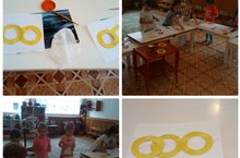 Тема:» Бублики-баранки»Задачи: Вызвать интерес к созданию аппликативных картинок из 3-5 баранок и бубликов (бумажных колец разного размера) на основе нитки-«нанизывать» в связку. Учить раскладывать готовые формы на некотором расстоянии друг от друга или с частичным наложением, наносить клей по окружности и составлять композицию. Развивать чувство формы и ритма.Воспитатель: Рустамова А.Ф. -